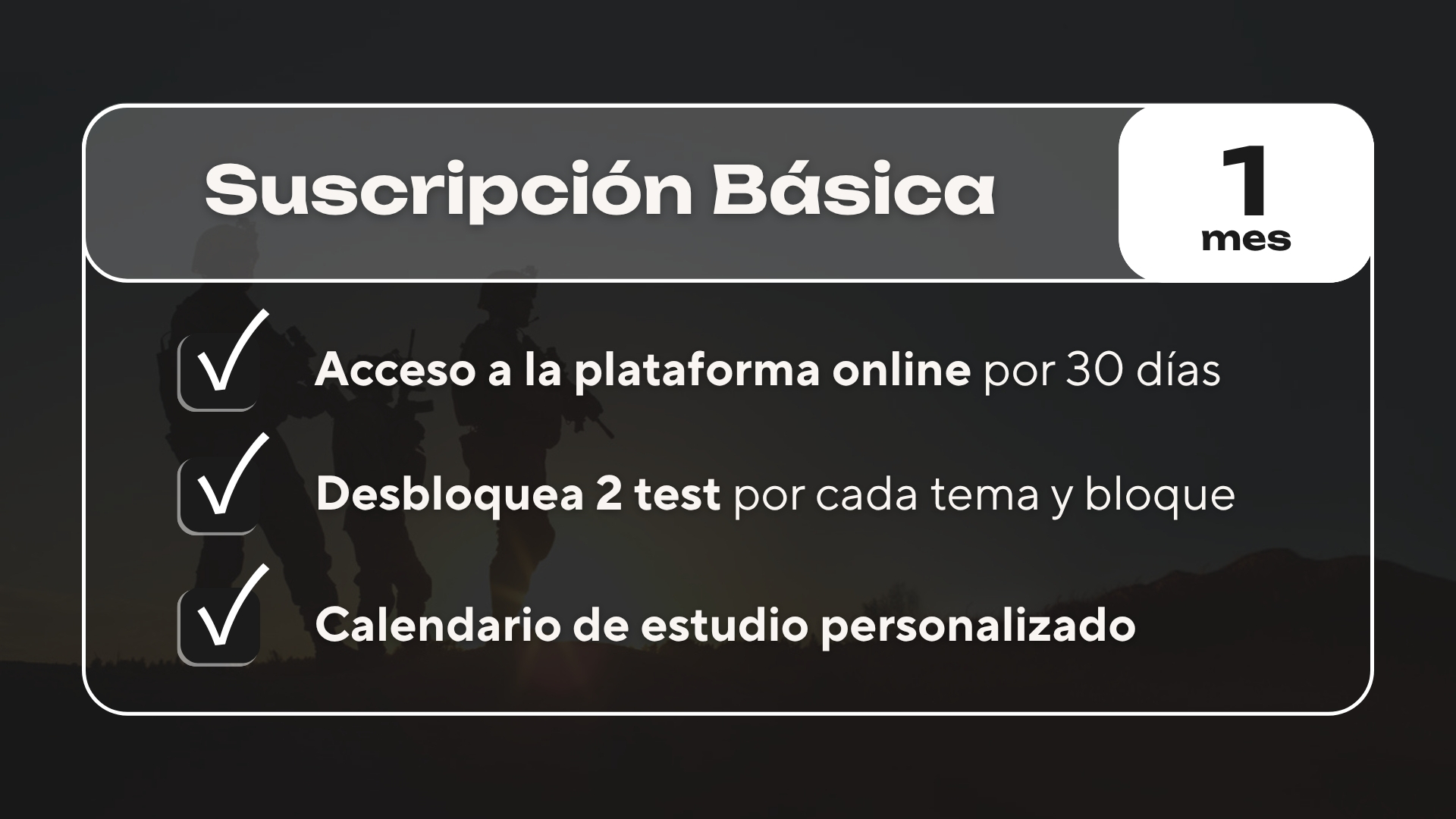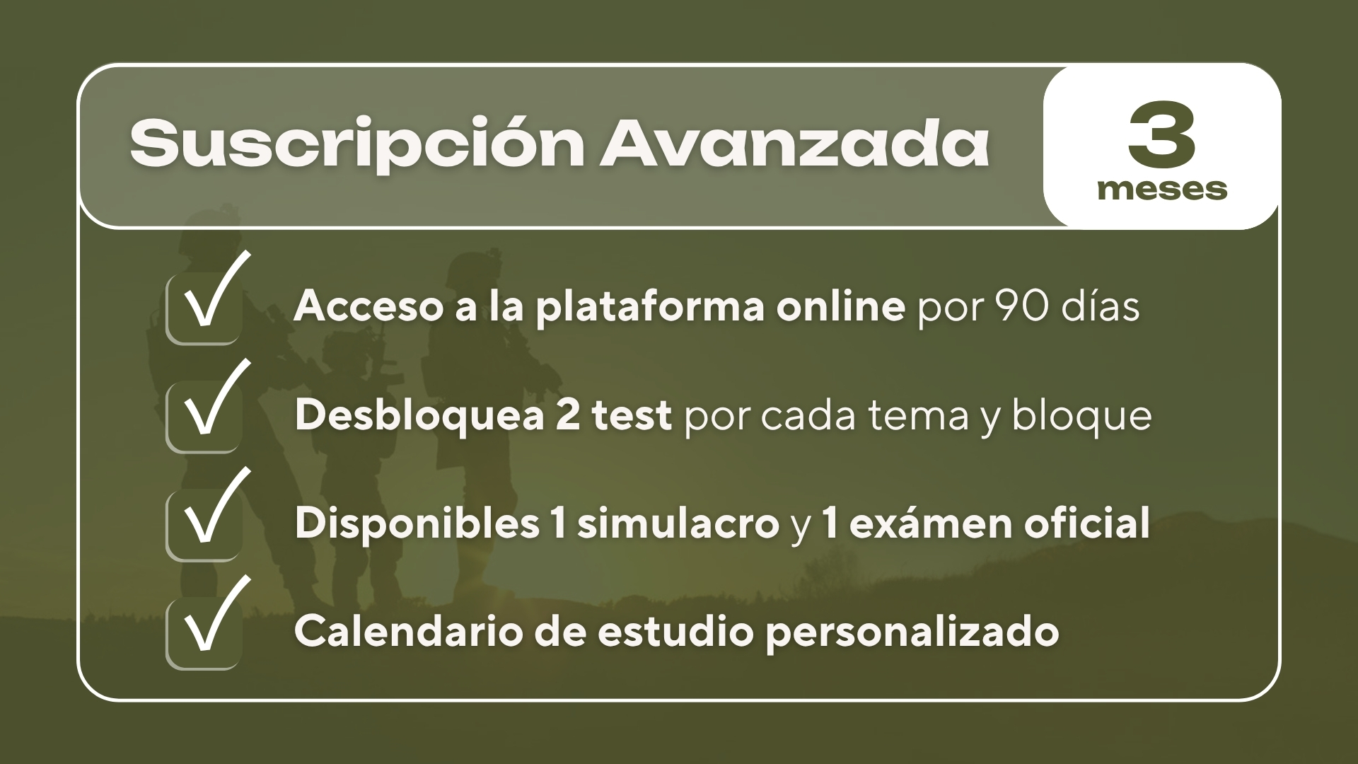 Podrás realizar exámenes por temas, bloques, simulacros y exámenes oficiales de años anteriores. Y contarás con una preparación completa con instructores especializados, diseñando un calendario mensual personalizado, adaptándonos a tu ritmo de estudio.